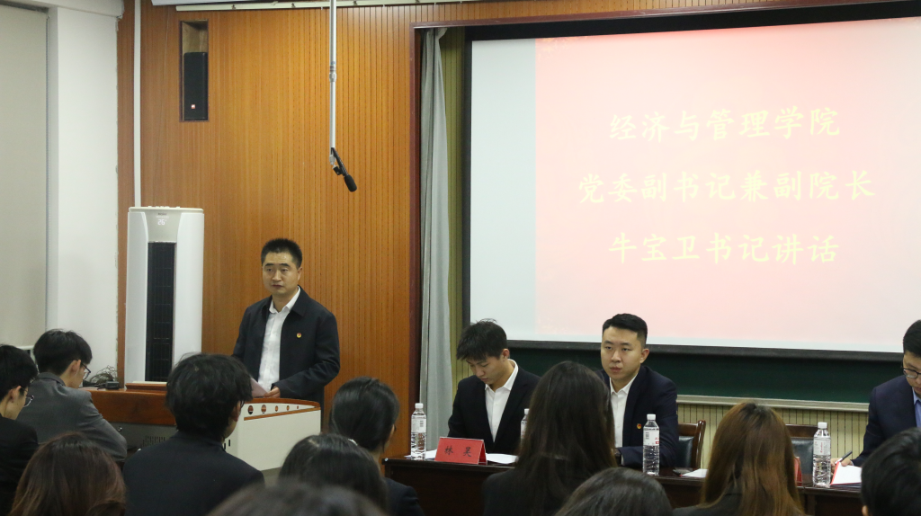 牛宝卫代表学院党委讲话。他充分肯定了学院上一届学生会和研究生会在思想引领、学风建设、权益维护、服务同学等方面作出的积极贡献,并对全体青年学生提出三点希望:一是勇担代表使命,锤炼过硬本领。认真学习相关政策,积极参加学代会各项安排,认真宣传、贯彻学代会决议,履行应尽职责;二是聚焦政治引领,加强思想建设。及时、准确、全面传达党的声音,牢记初心,带领团员青年听党话、跟党走;三是加强自身建设,紧密联系青年。坚持服务导向,关注广大同学学业发展、身心健康、校园生活等方面的需求,切实为广大同学做好服务。