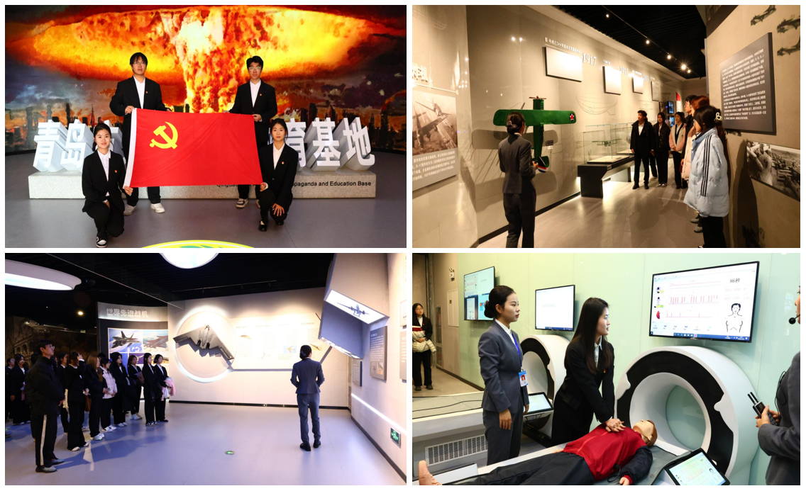 活动伊始,在基地专业讲解员的引领下,学生党员们有序参观了十大核心展区。裸眼3D、交互全息投影等现代技术构建起沉浸式学习场景,从人防事业的萌芽起步到新时代的创新发展,历史脉络清晰呈现。轰炸机模型前,模拟空袭音效与详实史料相互印证,让党员们直观感受战争年代的烽火硝烟,深刻认识到人防工作“人民至上、生命至上”的核心宗旨,更坚定了“国无防不立,民无防不安”的国防观念,为后续党性学习筑牢思想根基。