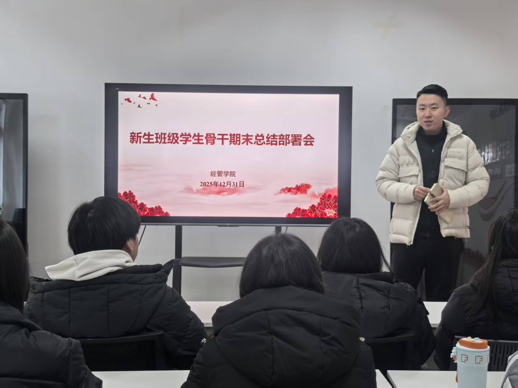 在“一站式”学生社区召开2025级新生班级学生骨干期末总结部署会。新生辅导员孙建树、2025级学生骨干代表参加会议。