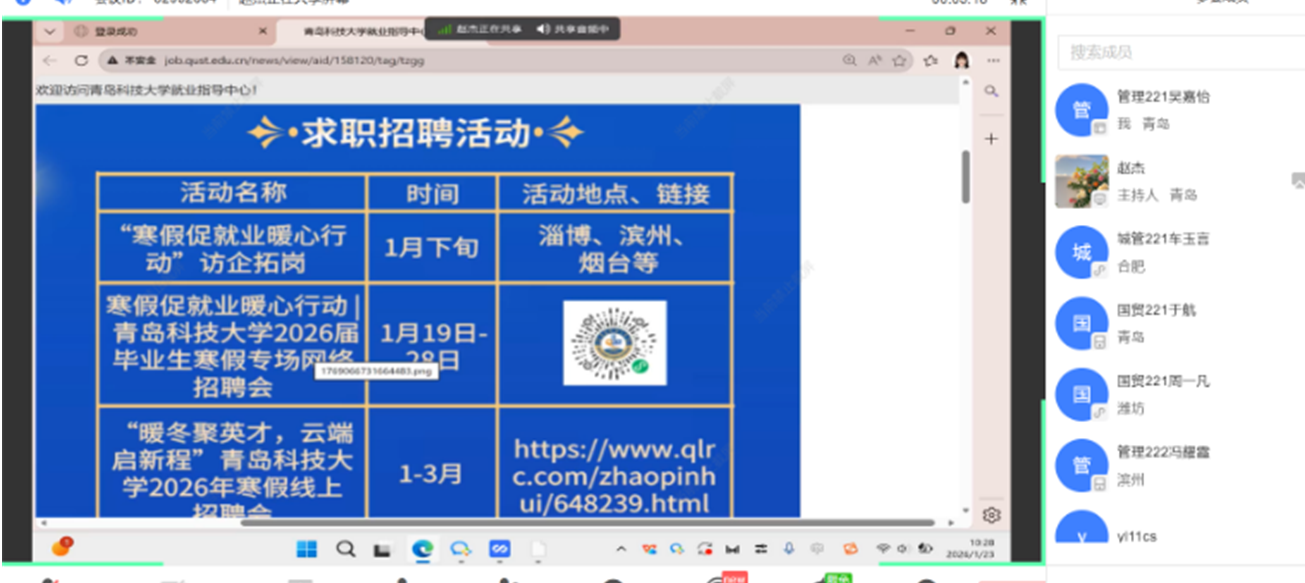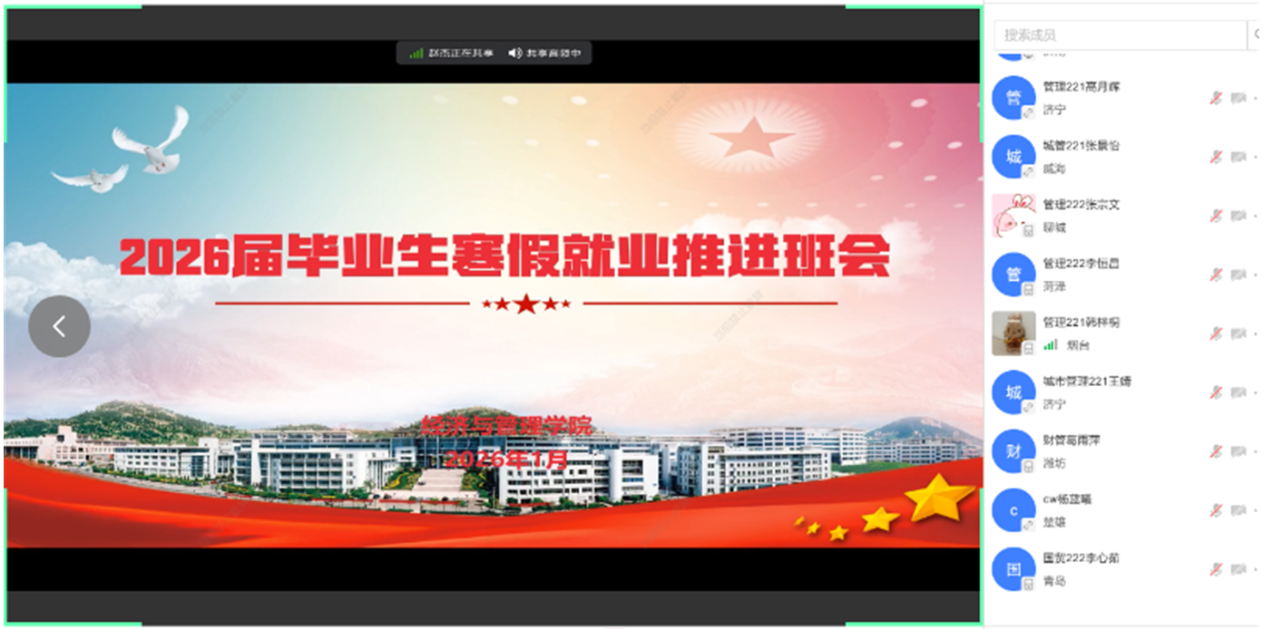组织开展2026届毕业生寒假就业推进会。学院学工办主任付继航,毕业年级辅导员赵杰及2026届毕业生参加会议。