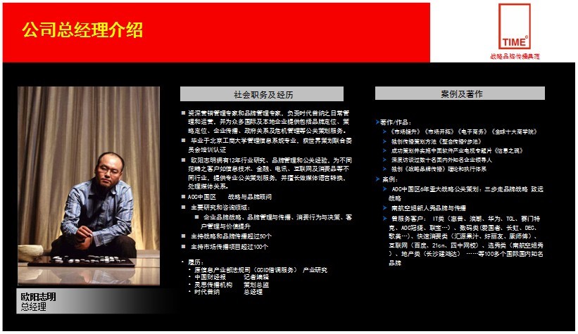 报告人:时代普纳营销公司总经理 欧阳志明