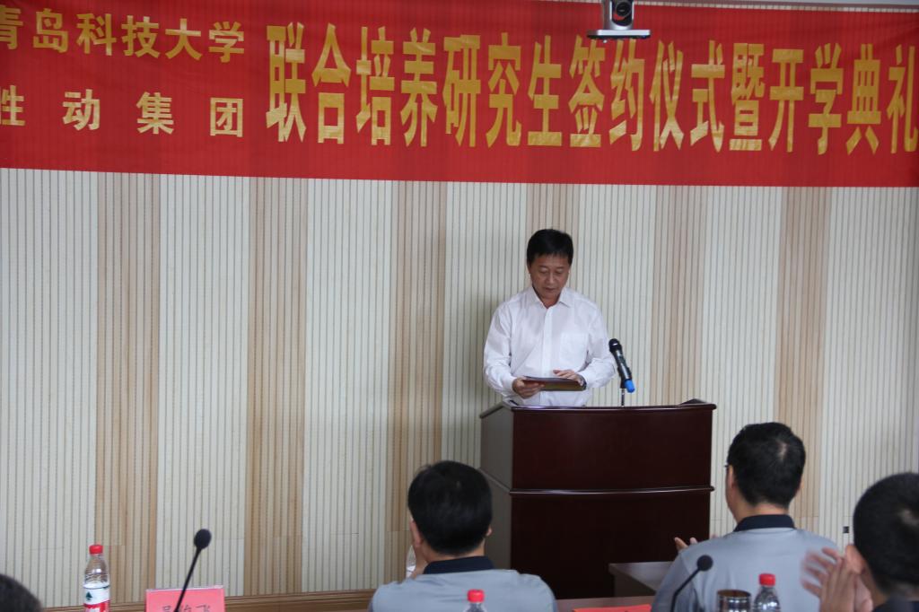 张元利在仪式上致欢迎词,对胜动集团领导、学员的到来表示热烈欢迎,并祝愿各位学员在青岛科技大学学习愉快、学有所成,为集团发展做出更大贡献。