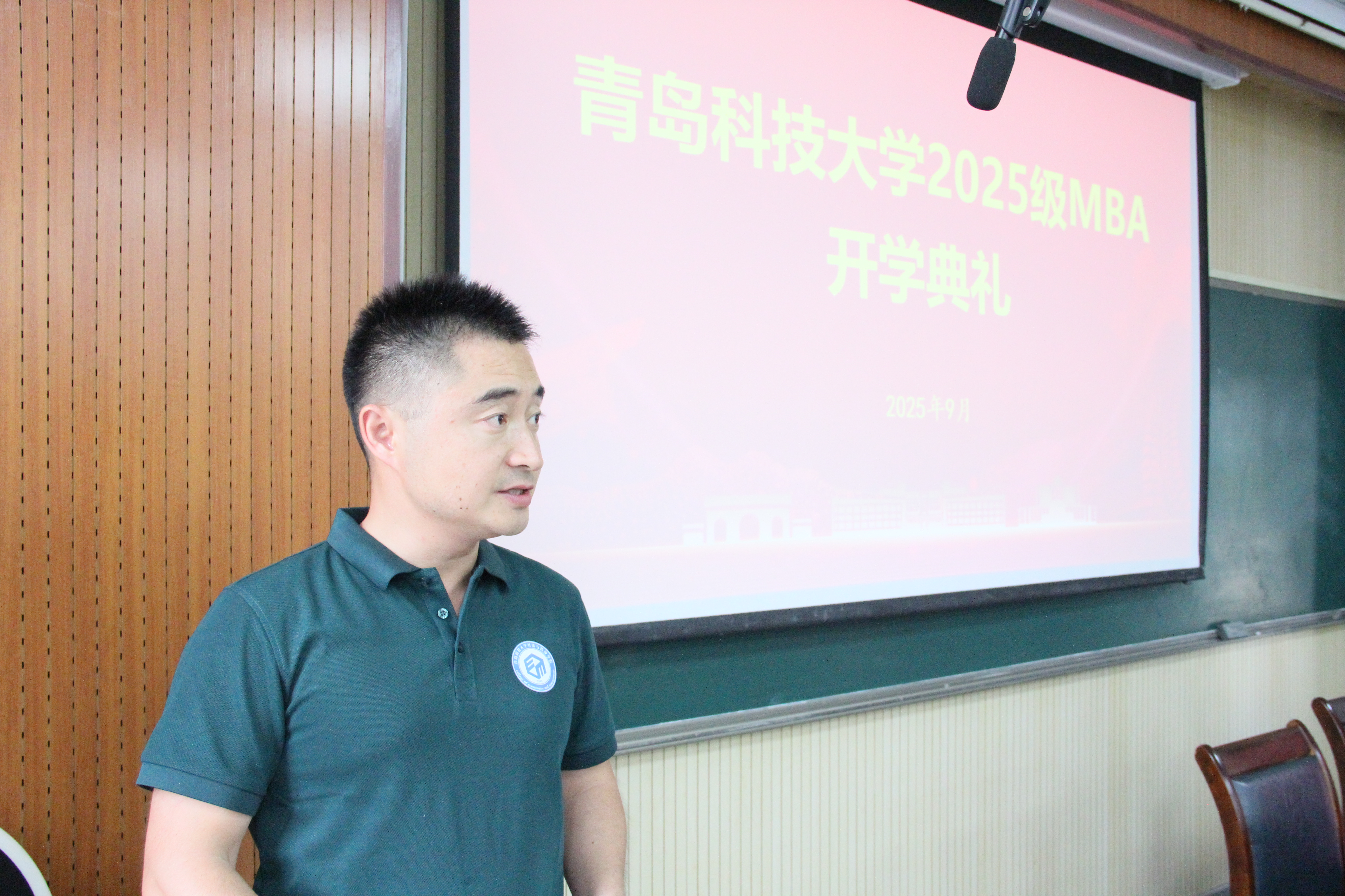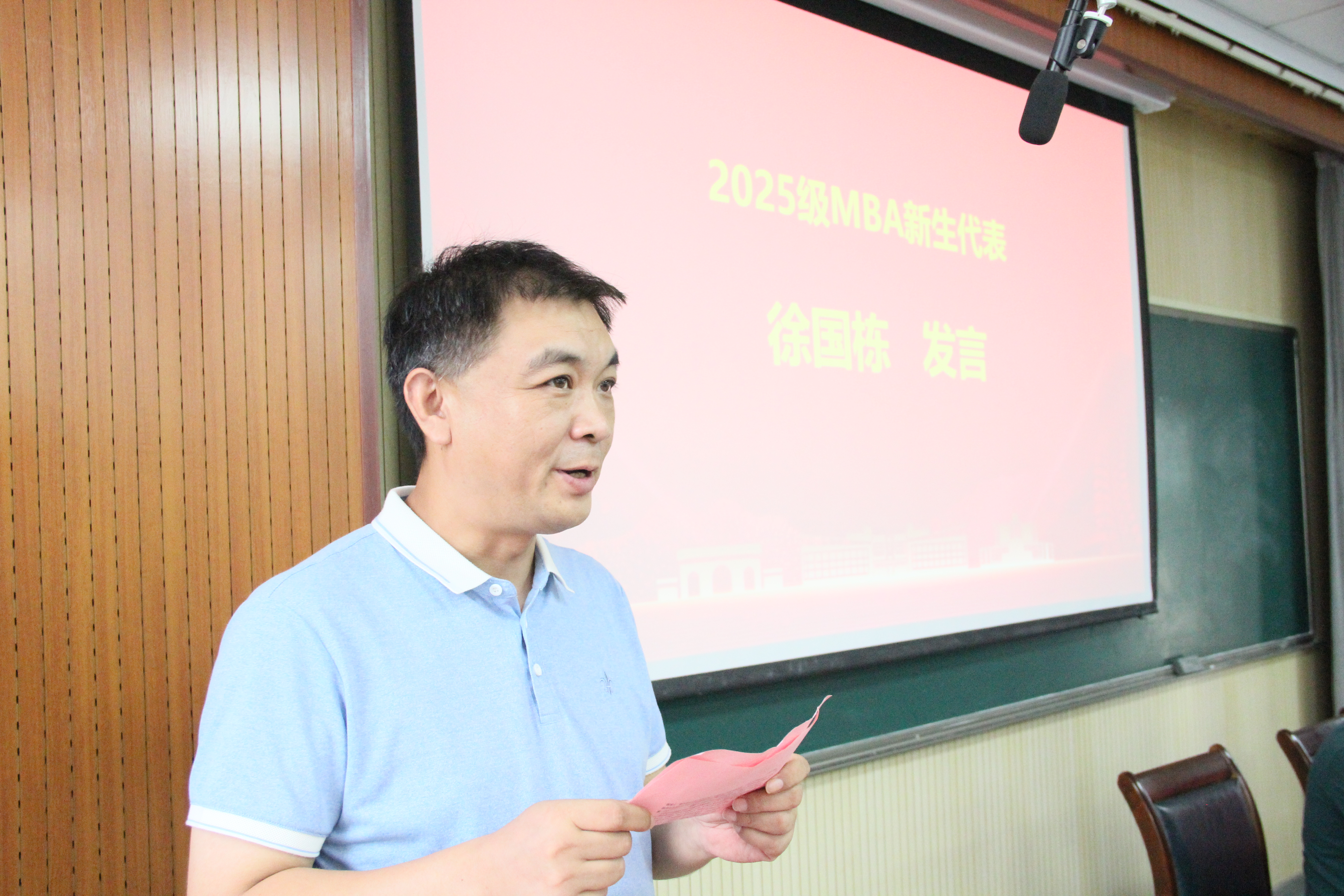 2025级MBA徐国栋代表全体新生进行发言,他表示,作为一名新生,很荣幸可以来到青科大读书,接下来,一定会不忘初心,加强学习,努力从学习中获知受益,为自身事业的进步和我校MBA发展做出贡献。