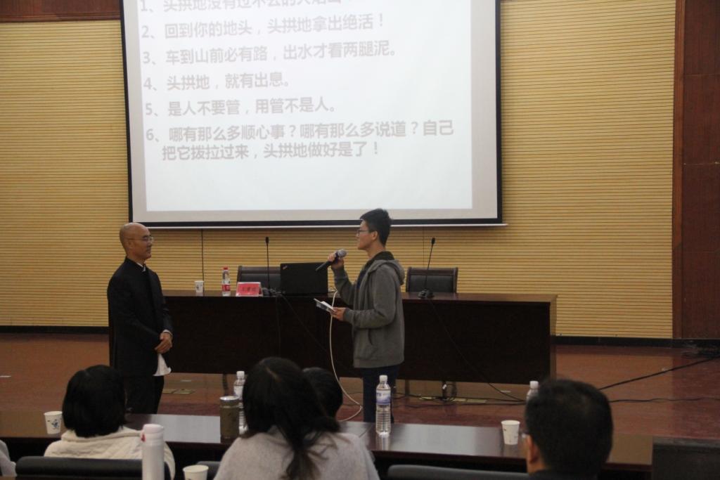王育琨教授以“华为:原力觉醒之道”为题目,用与女儿的对话和老娘“回到你的地头,头拱地拿出绝活”等质朴又饱含哲理的话语,以及现场听众的互动和王教授的引导解析,深入浅出地解析了企业发展和管理中的“真”。整个报告会妙语连珠、气氛活跃、高潮迭起,听众大呼过瘾。通过王育琨教授的报告,参会者对华为的逻辑:“人靠绝活立身,华为靠产品实现高收益,回到源头,拿出绝活”有了更深入理解。报告会还用“温暖的手”、破碎的“芭蕾脚”两幅感人图片对这一逻辑给出了生动诠释。整个报告会借华为之载体、“老娘地头力”之形容,多维度探讨了企业发展真谛,弘扬了中国优秀文化之大道。