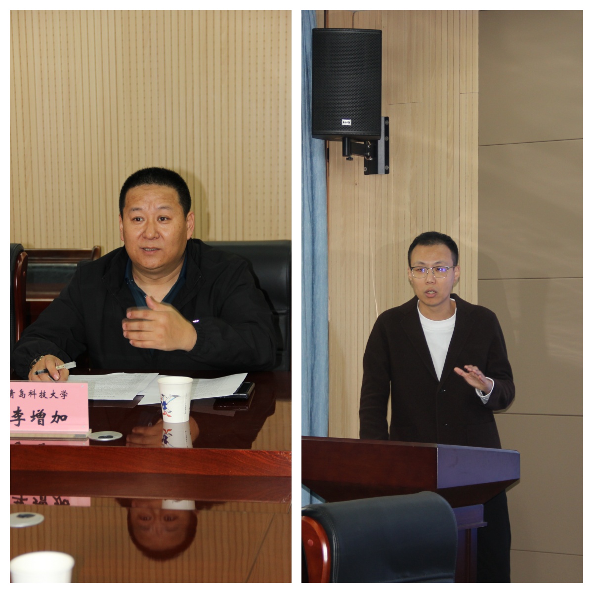 兄弟院校代表中国海洋大学MBA联合会主席刘飞宇、山东大学MBA青岛跑团团长徐彬彬分别发表讲话,对青岛科技大学MBA联合会主席团和跑团换届致以热烈祝贺,并期待未来在活动共建、资源整合等方面进一步深化合作。