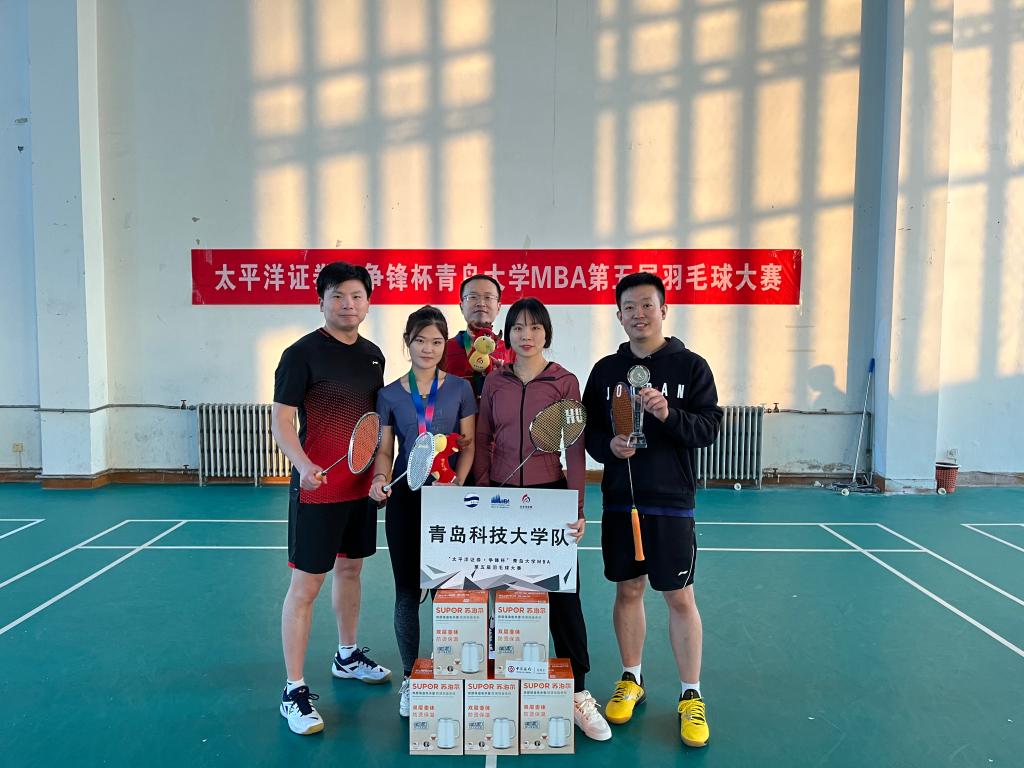 124日下午,我校MBA教育中心受邀参加青岛大学MBA教育中心举办的第五届“太平洋证券·争锋杯”羽毛球大赛。在校MBA学员黄河、李威、王琨、乔慧欣、王静组成青岛科技大学队参赛。