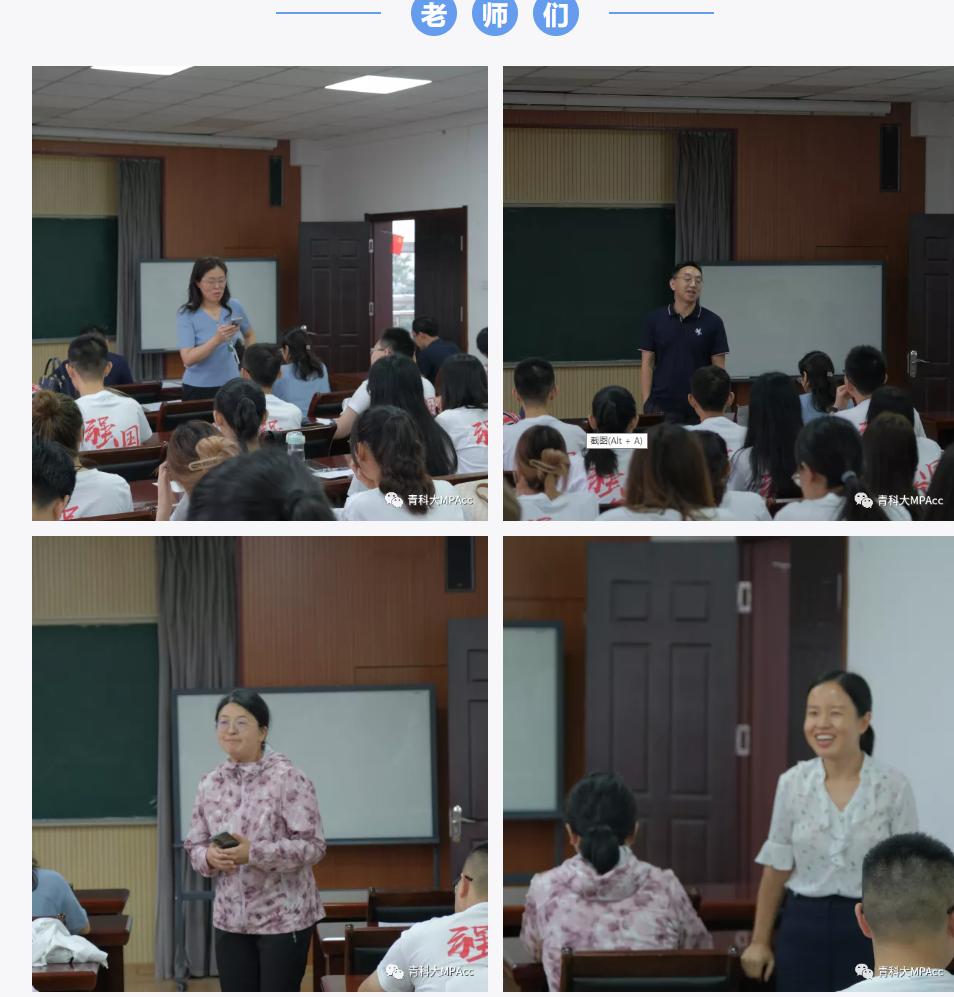 副院长姜铭老师,MPAcc中心主任于培友老师、副主任祝兵老师,孙兰兰老师、陈明老师、董华老师、王玉英老师、张同功老师、张先敏老师、张占贞老师、张玉老师,MPAcc教务管理柳鑫老师以及全体MPAcc2021级新生们。